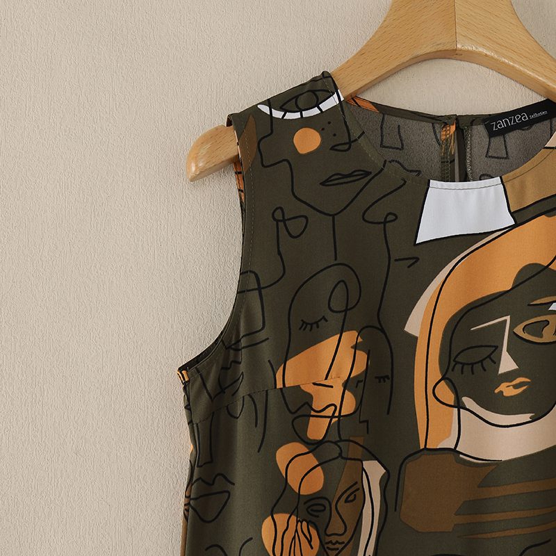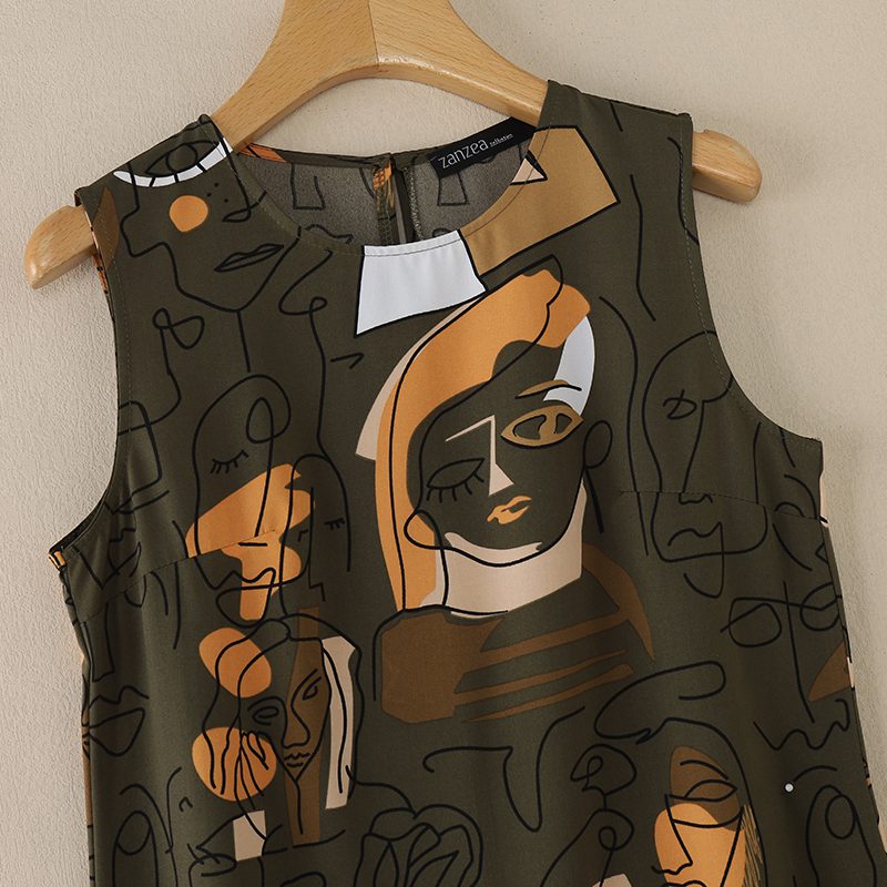 ZANZEA Elegant Style Women��s Dresses Sleeveless Round Neck Printed A-Line Mermaid Dress