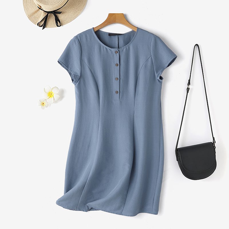 ZANZEA Womens Casual Loose Dress Holiday Short Sleeve Round Neck Plain Vestidos Sundress