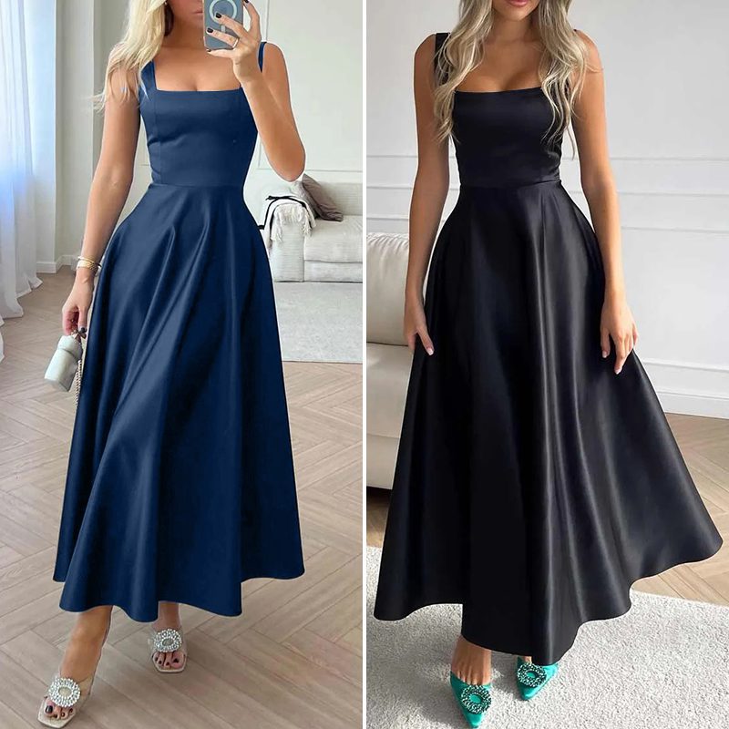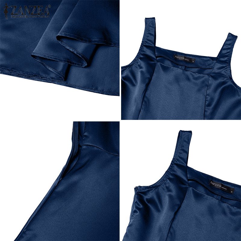 ZANZEA Womens Collect Waist A-Line Sundress Elegant Party Square Neck Tank Dress