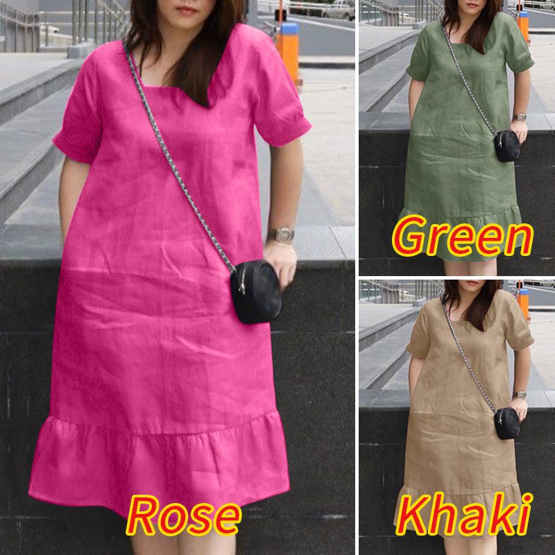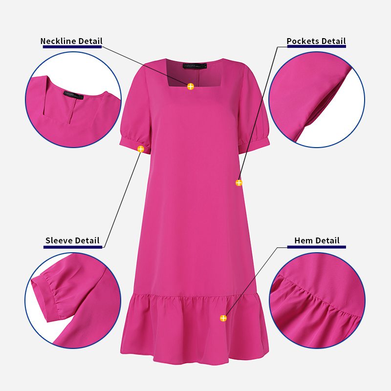 ZANZEA Women��s Dresses Summer Vintage Casual Lantern Sleeve Ruffled Trim Square Neck Loose Solid Dress